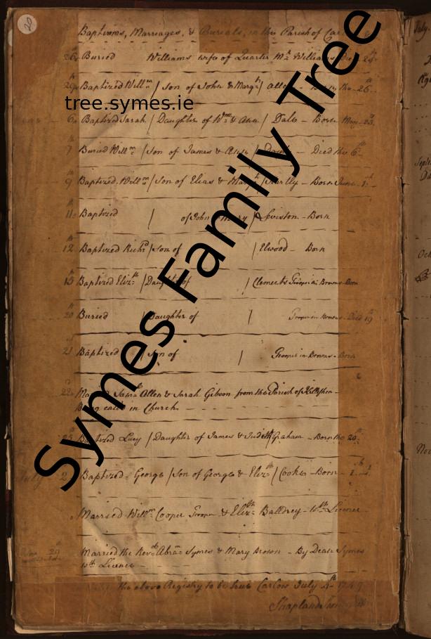 Jeremiah Symes Birth: 1645 — Daventry, Northamptonshire, England Death: 1712 — Glascarrig, Co. Wexford, Ireland |